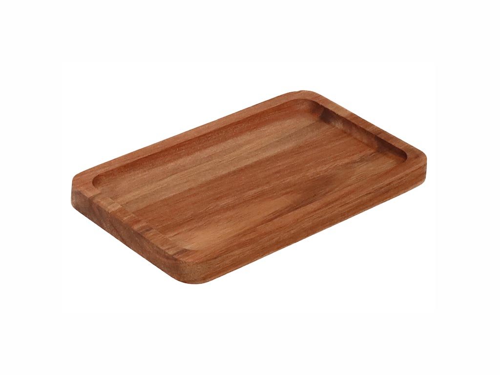 Akacijev pladenj velikosti 20 x 12 cm je praktičen in eleganten pomočnik za vsakodnevno serviranje in manjše okraske. Zaradi manjših dimenzij je idealen za serviranje kave, čaja, sladic ali zajtrka, pa tudi za serviranje manjših prigrizkov. Naravni videz akacijevega lesa bo vsaki kulinarični izkušnji dodal prijetno in elegantno vzdušje.