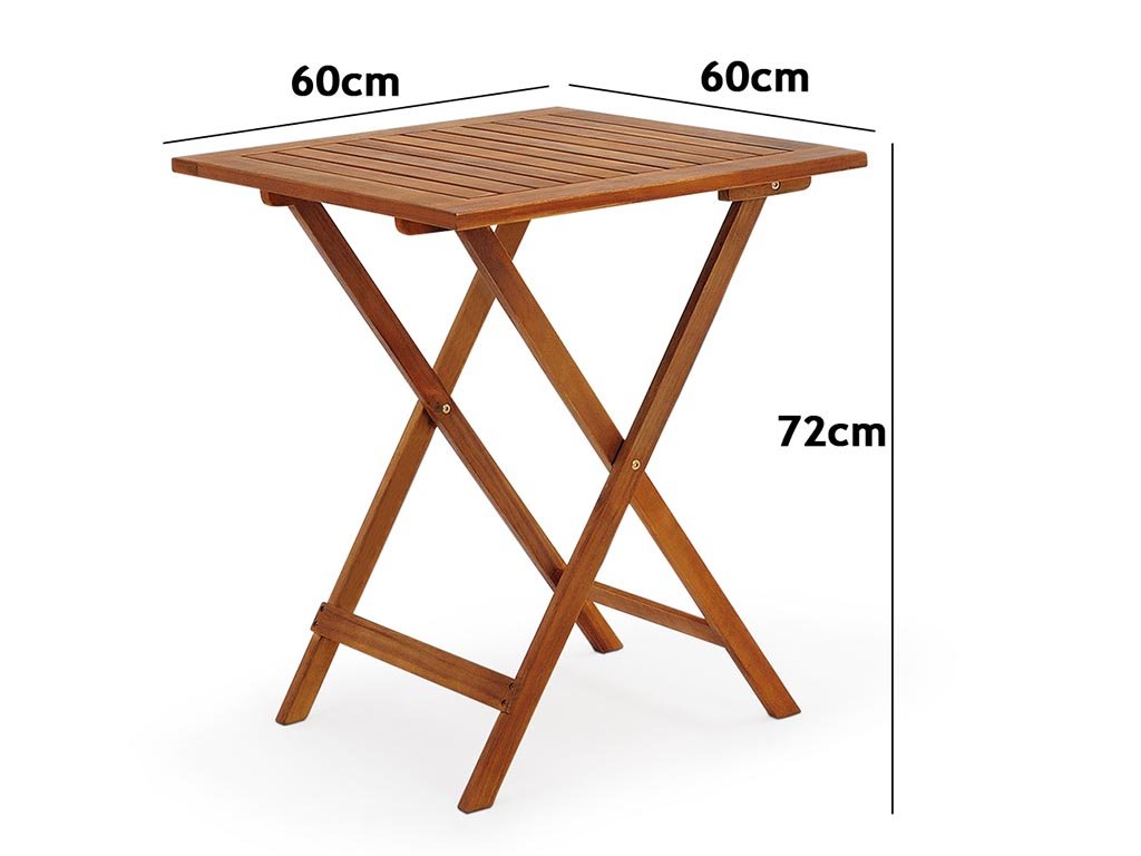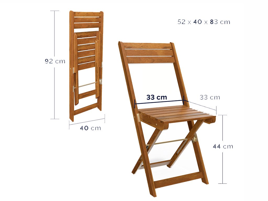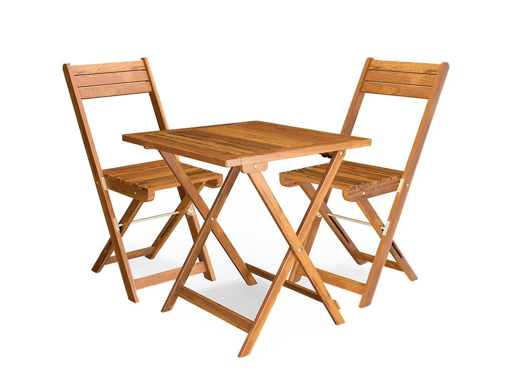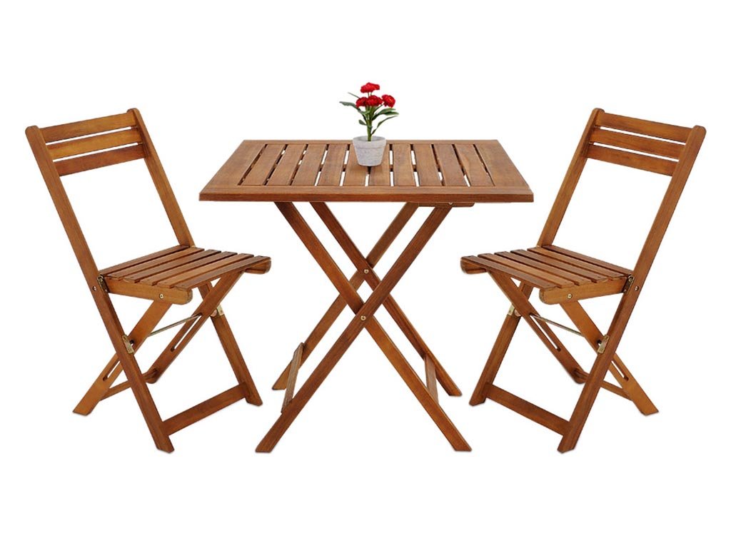 Praktični balkonski set je sestavljen iz mize in dveh stolov ter izdelan iz visokokakovostnega masivnega akacijevega lesa. Celoten komplet je zložljiv, zato ga je mogoče enostavno shraniti in prihraniti prostor. Prostorna mizna plošča je idealna za zajtrk, kavo ali prijetno posedanje s prijatelji na balkonu, terasi ali vrtu.