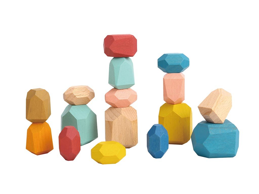 Barviti kamni za uravnoteženje iz bukovega lesa otrokom prinašajo zabavo in navdušenje. Med igro sploh ne bodo opazili, da razvijajo potrpežljivost ter izboljšujejo svoje fine motorične sposobnosti in prostorsko domišljijo.