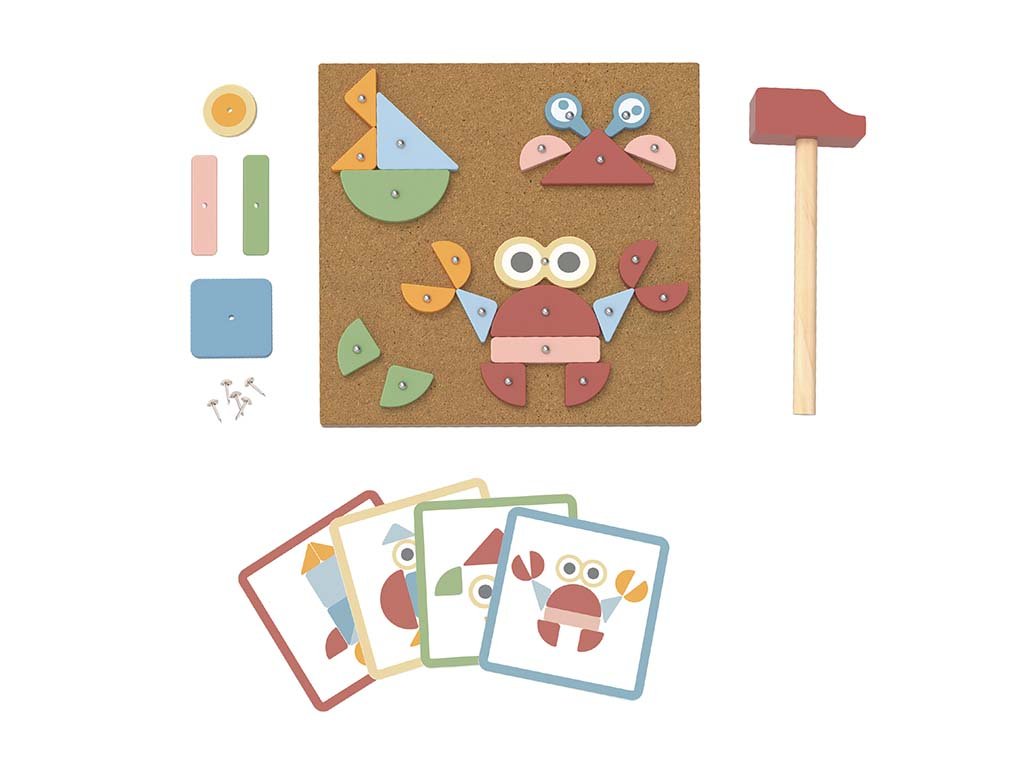 Razvijajte otrokove spretnosti na zabaven način! Plutovinasta tabla z lesenimi koščki ponuja neskončne možnosti za sestavljanje slik, hkrati pa izboljšuje finomotoriko in otroško domišljijo.