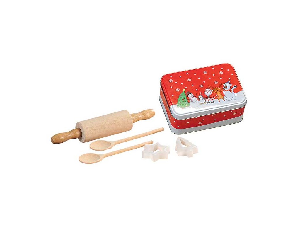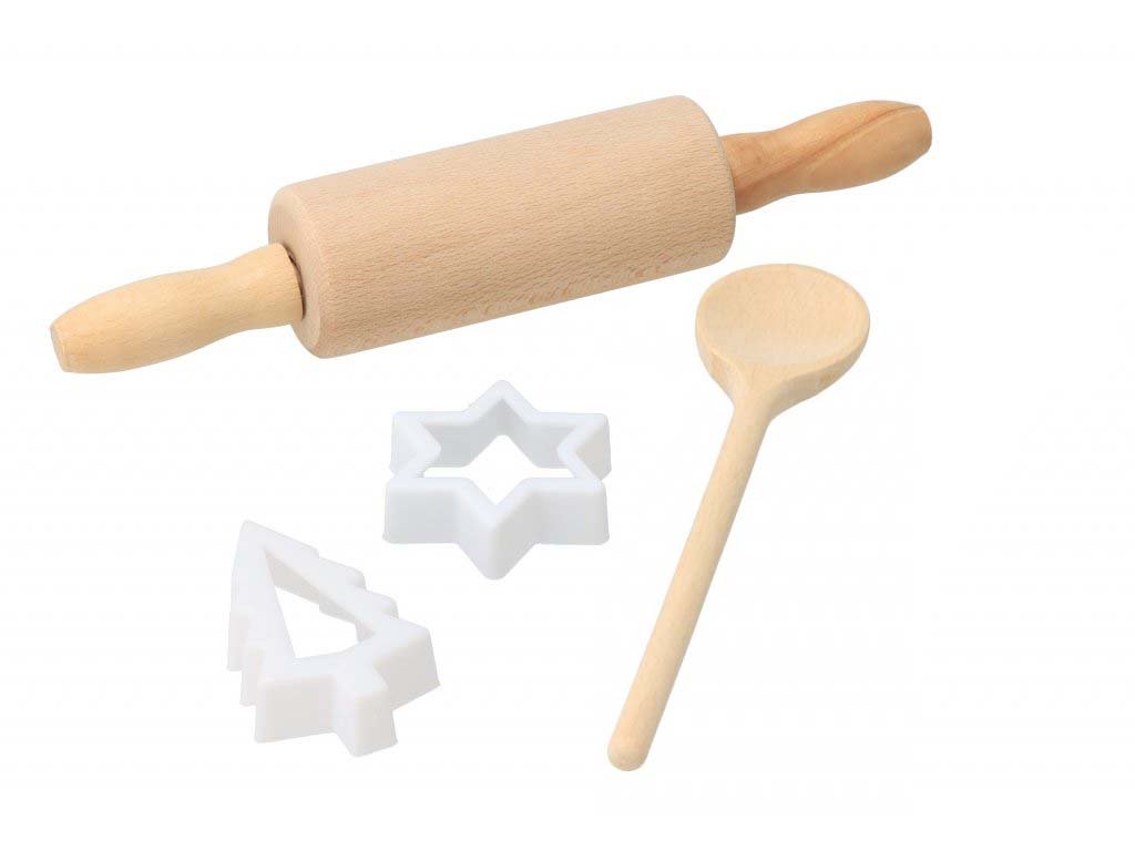 Leseni set za peko bo odlično darilo tako za punčke kot za fantke, ki se podajajo na pekovsko avanturo. Komplet vključuje valjar, 2 rezalnika in 2 leseni žlici.
