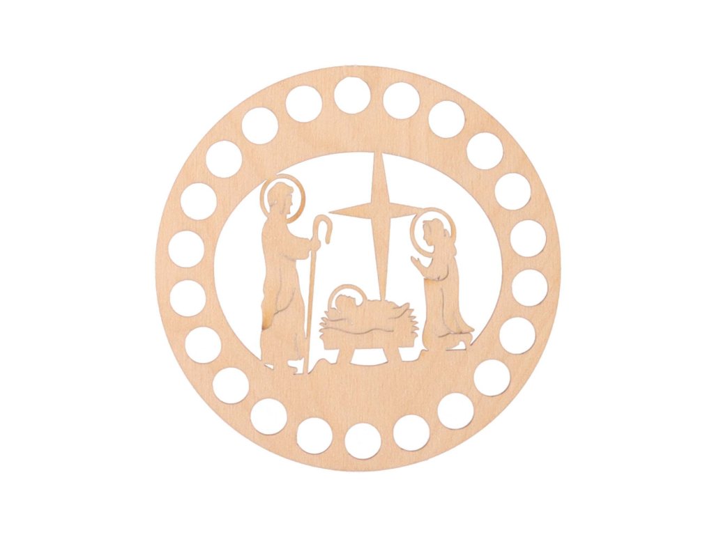Okrogel pokrov za košaro z izrezljanimi jaslicami je izdelan iz brezove vezane plošče debeline 3 mm. Primeren je za izdelavo kvačkanih košar in organizatorjev iz vrvice. Ponujamo različne velikosti.