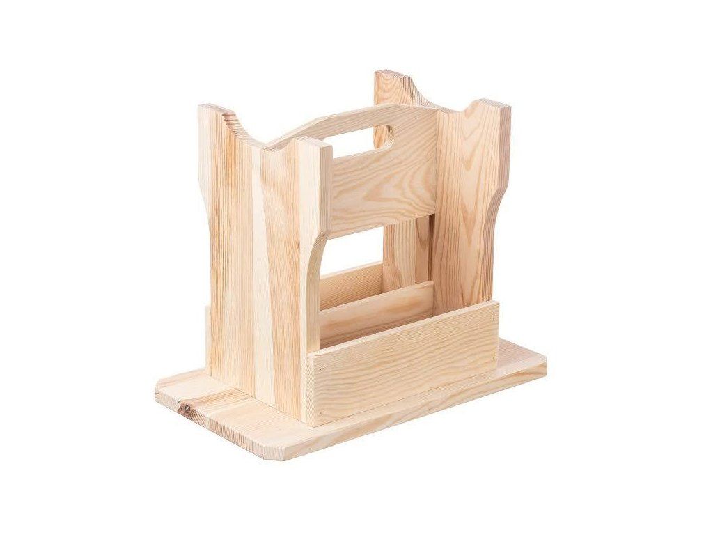 Predstavljamo vam udoben in priročen tabure iz borovega lesa, ki ga lahko uporabite kot nosilec za steklenice ali druge predmete. Popoln za počitnice, kampiranje ali poletna potovanja. Priročen ročaj olajša prenašanje najnujnejših stvari, po potrebi pa lahko nosilko hitro spremenite v prostor za sedenje in počitek.