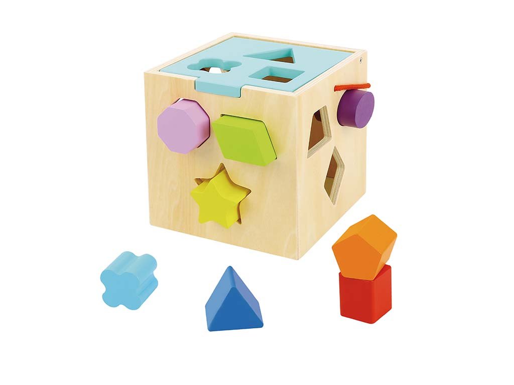 Ta izobraževalna lesena kocka pomaga otrokom prepoznavati oblike, barve in velikosti. Na igriv način podpira razvoj fine motorike, logičnega mišljenja in radovednosti pri otrocih.