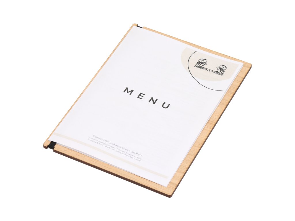 Jedilnik morate le natisniti in ga vstaviti za močno gumico. Ko se umaže ali poškoduje, ga lahko takoj zamenjate za novega, tako da vsaka stranka prejme elegantno menijsko kartico.