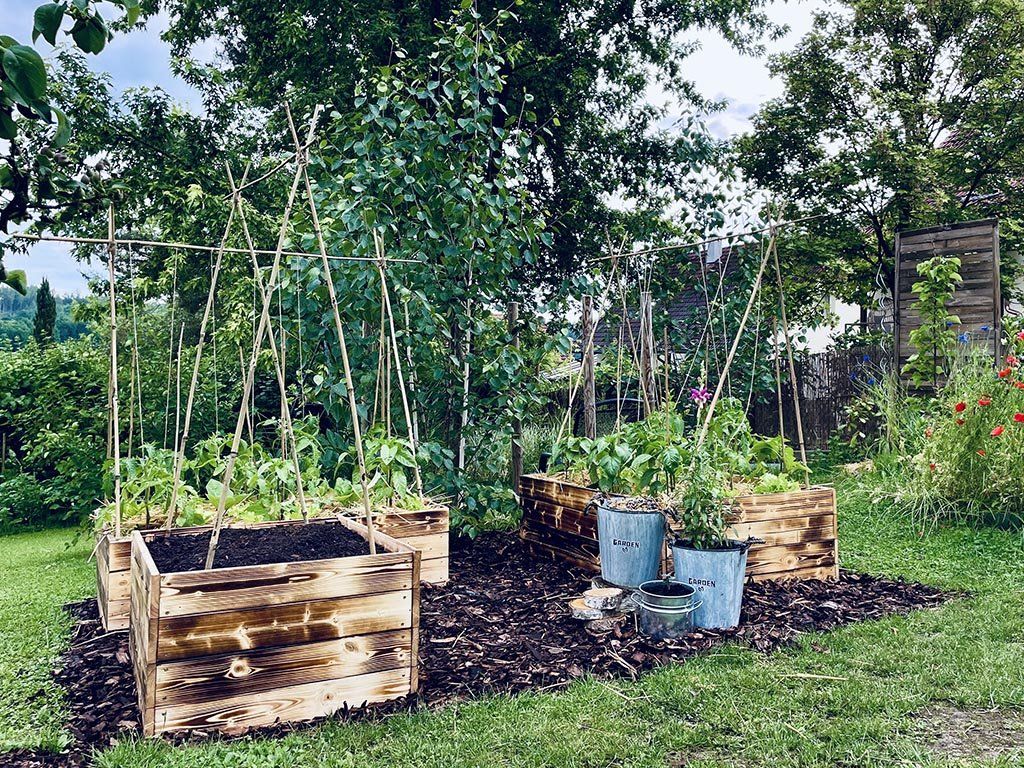 Lesena visoka greda znamke ATMOWOOD - popoln vrt na dosegu roke. Ožgana površina lesa je bolj odporna na vremenske vplive in lesne škodljivce.