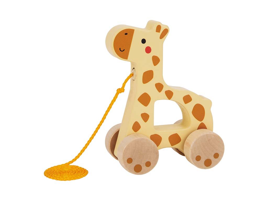 Lesena žirafa na vrvici bo zvest spremljevalec pri prvih korakih vašega otroka. Igrača podpira naravno željo po gibanju, ravnotežju in koordinaciji, hkrati pa otroke motivira k samostojni hoji.