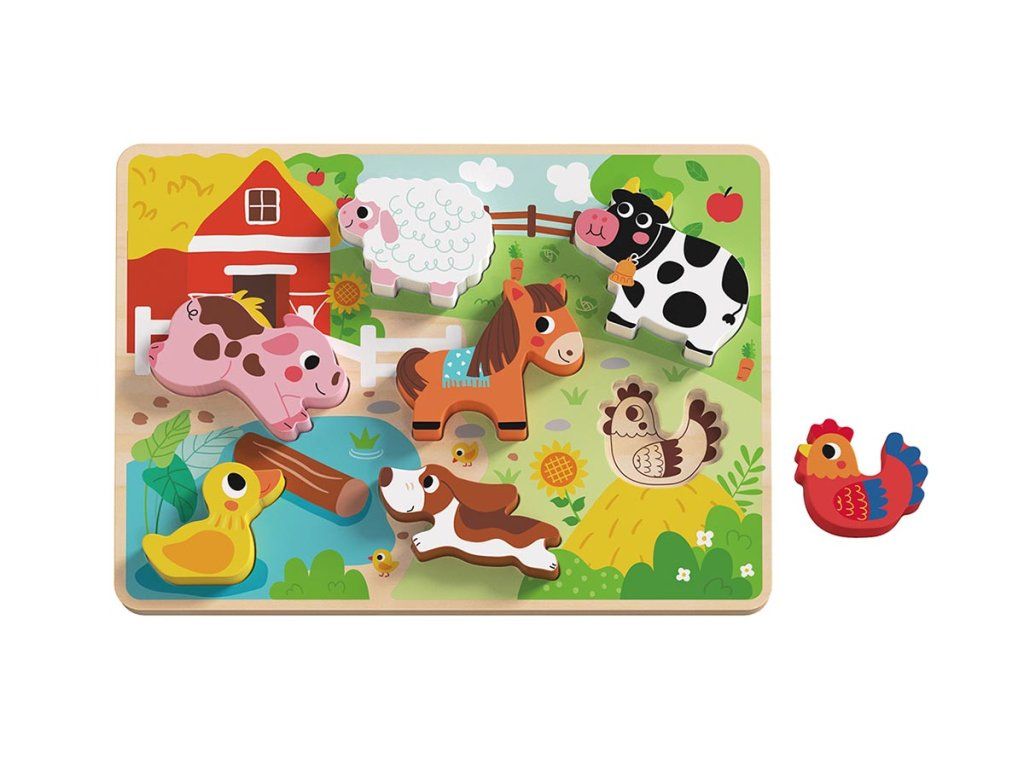 Lesena vložna sestavljanka - živali na kmetiji