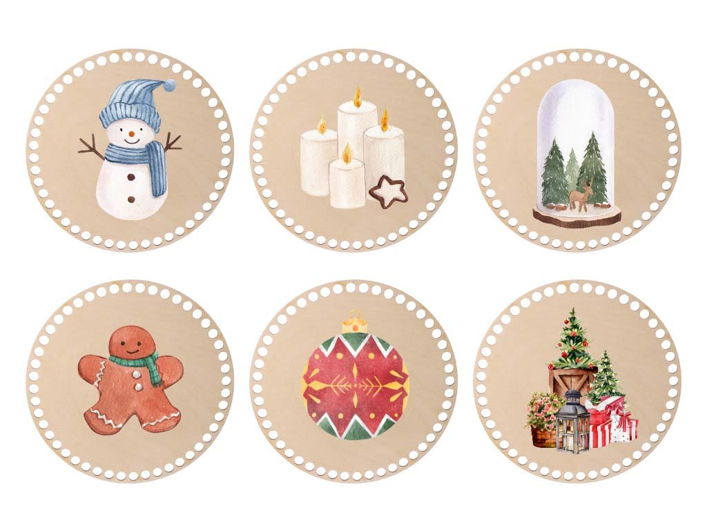 Okrogla lesena podlaga z božičnim motivom je primerna za izdelavo stilskih podstavkov, kvačkanih košar in organizatorjev. Ponujamo različne vrste, pa tudi primerno prejo lahko kupite pri nas.