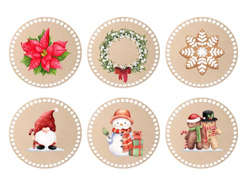 Okrogla lesena podlaga z božičnim motivom je primerna za izdelavo stilskih podstavkov, kvačkanih košar in organizatorjev. Ponujamo različne vrste, pa tudi primerno prejo lahko kupite pri nas.