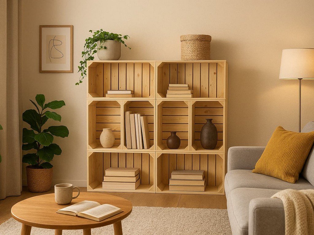 Elegantno in izvirno - to je pohištvo iz lesenih škatel. Poleg tega bo knjižnica z merami 102 x 62 x 20 cm zagotovila veliko prostora za kakovostno branje.