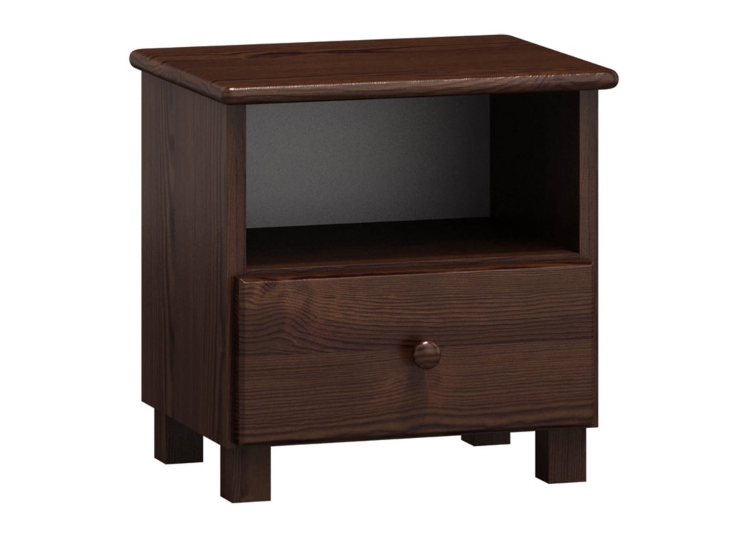 Praktična nočna omarica najde svoje mesto v vsaki spalnici. Dekor temnega orehovega lesa bo lepo dopolnil vašo notranjost in vam bo nedvomno všeč zaradi svojih praktičnih lastnosti.