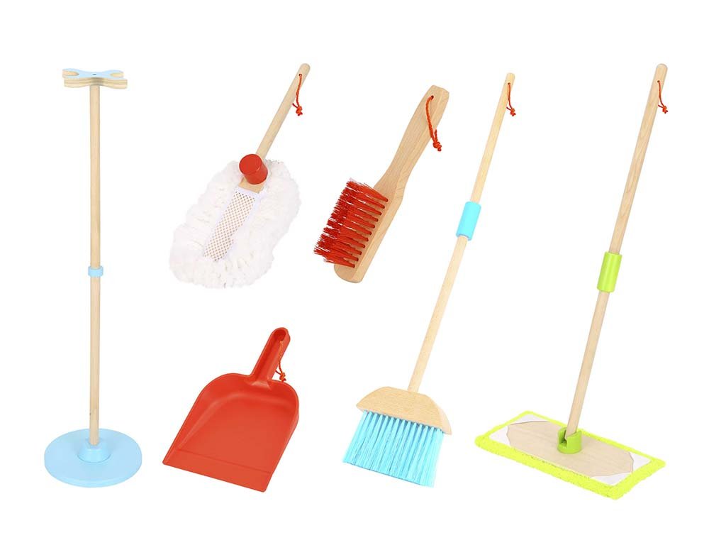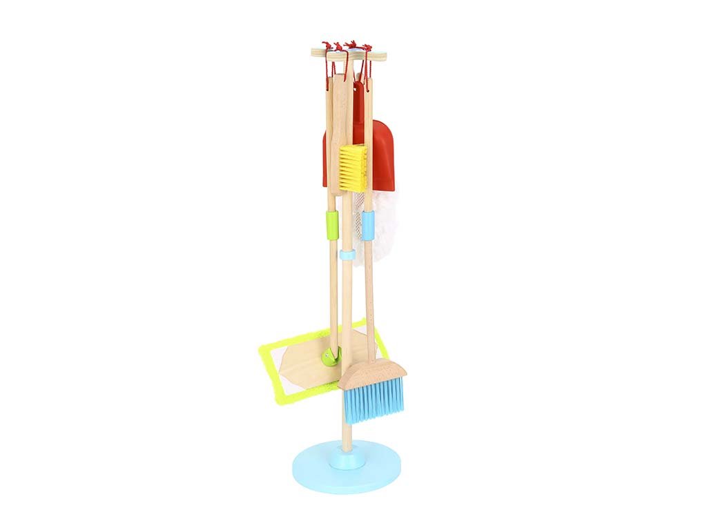 S tem barvitim lesenim kompletom za čiščenje se bodo mali pomočniki prelevili v prave gospodinje ali najemodajalce. Zahvaljujoč igri bodo otroci vadili svoje motorične sposobnosti, se učili odgovornosti in naravno pridobivali osnove gospodinjske nege.