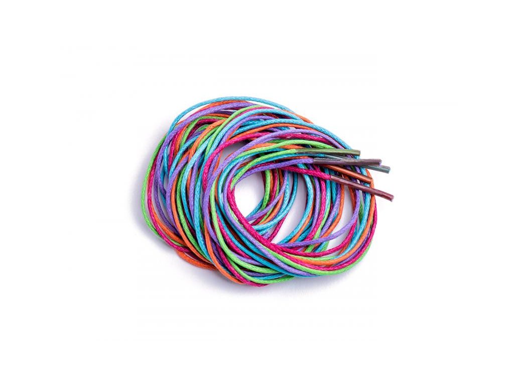 Paket vsebuje: perlice (bele, roza, zelene, vijolične), pisane vrvice, 3 obeske s premerom 3 cm.