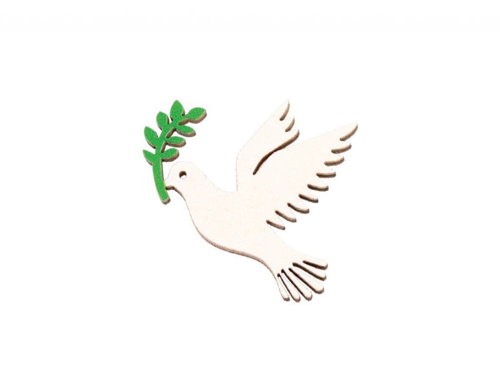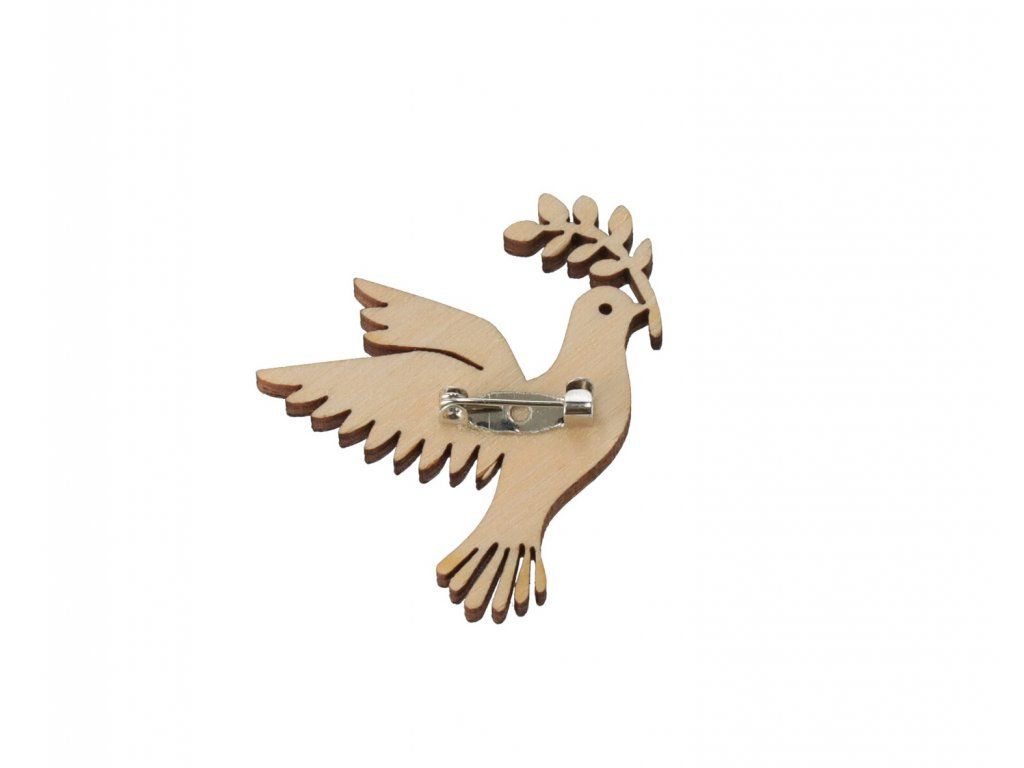V naši delavnici počasi, a vztrajno začenja nastajati posebna izdaja lesenih brošk. Ta bela broška je oblikovana kot golob z oljčno vejico, ki je simbol miru in čistosti. Ali ste vedeli, da je prvotni motiv ustvaril Picasso leta 1949 za Svetovni mirovni svet?