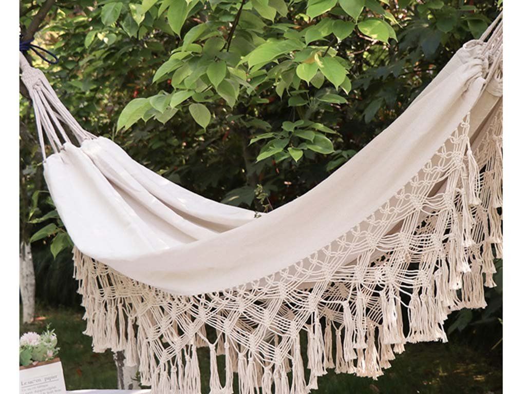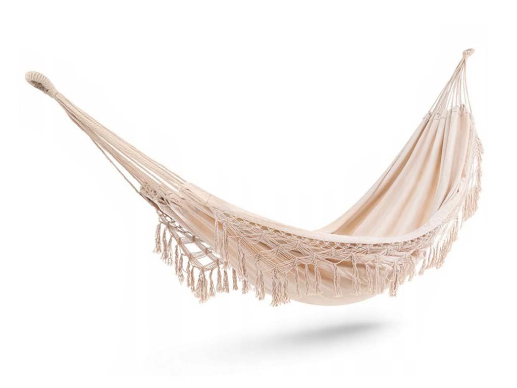Privoščite si zaslužen počitek v udobni viseči mreži. Izdelana je iz visokokakovostnega blaga v modernem boho stilu, kar zagotavlja, da se bo odlično podala v vaš interier. Ali pa bi se raje sprostili pod cvetočo jablano na vrtu?