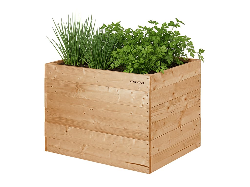 Macesnova visoka gredica znamke ATMOWOOD - sanjski vrt na dosegu roke. Trpežen masivni les prenese dež in sonce ter omogoča udobno rast brez nepotrebnega napora.