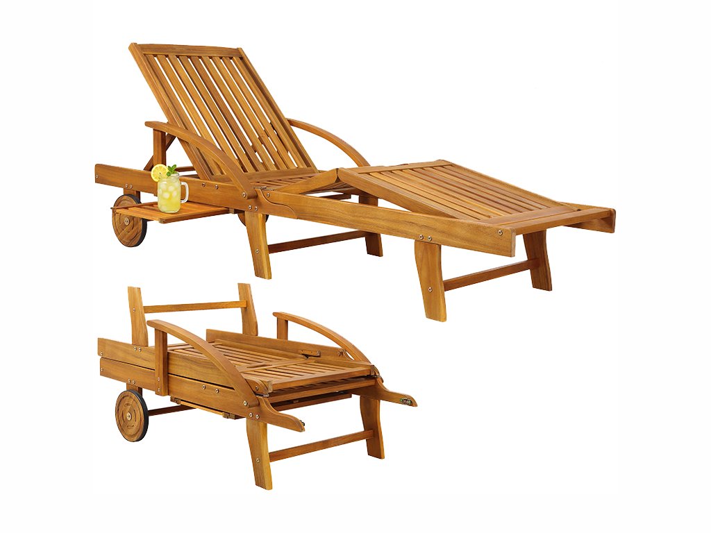 Ta visokokakovosten vrtni ležalnik je idealen za sproščanje in sončenje na vrtu ali terasi. Izdelan je iz akacijevega lesa in opremljen s kolesi, ki omogočajo enostavno premikanje, tako da ga lahko preprosto postavite kamor koli želite za popolno sprostitev.