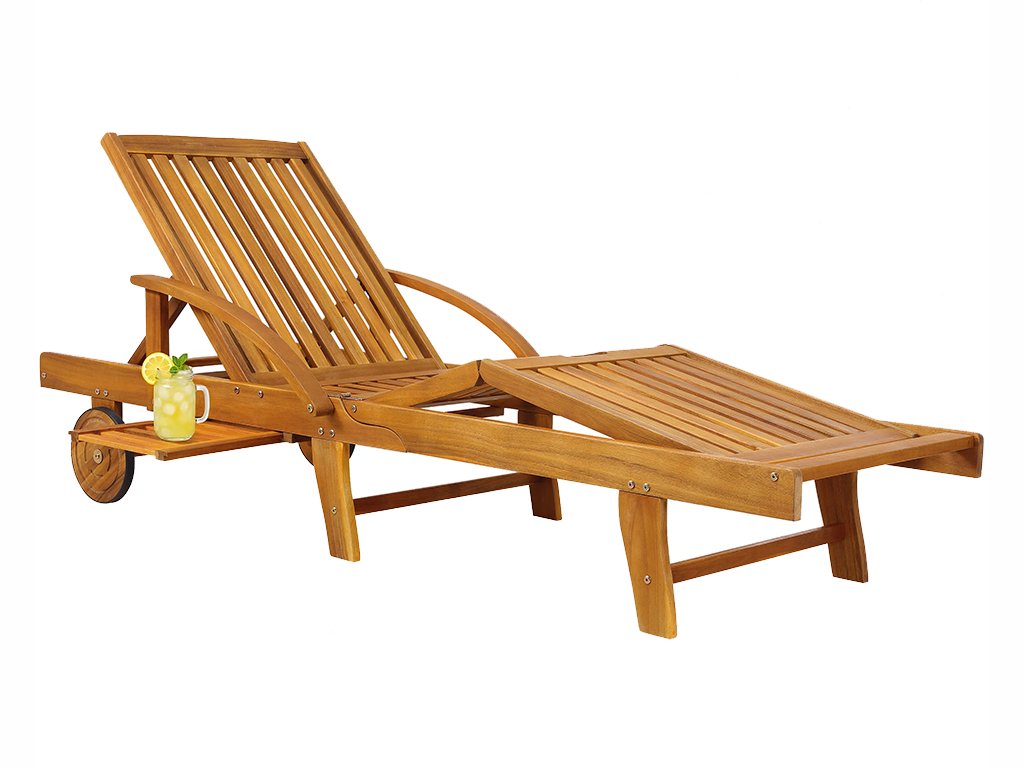 Z visokokakovostnim lesenim ležalnikom se lahko sprostite v vsakem vremenu, primeren je tako za notranjo kot zunanjo uporabo. Za maksimalno udobje je ležalnik individualno nastavljiv - naslonjalo in naslon za noge se prilagodita vašim potrebam. Praktična izvlečna stranska mizica nudi prostor za vaše najljubše pijače, knjigo ali manjše prigrizke.
