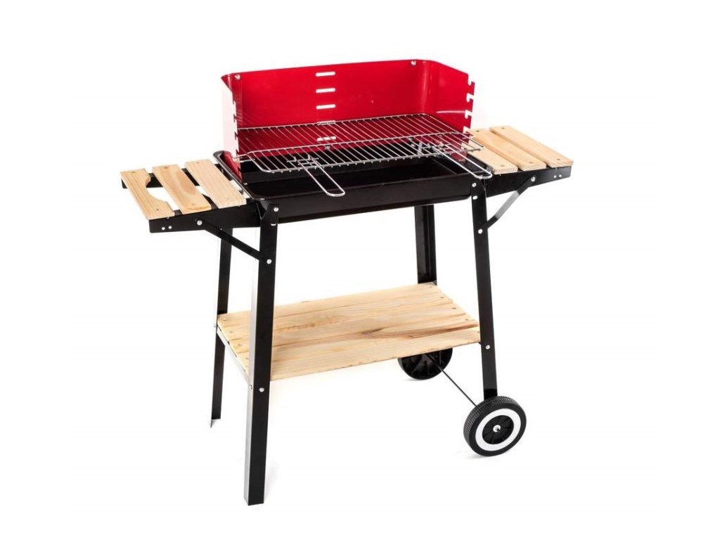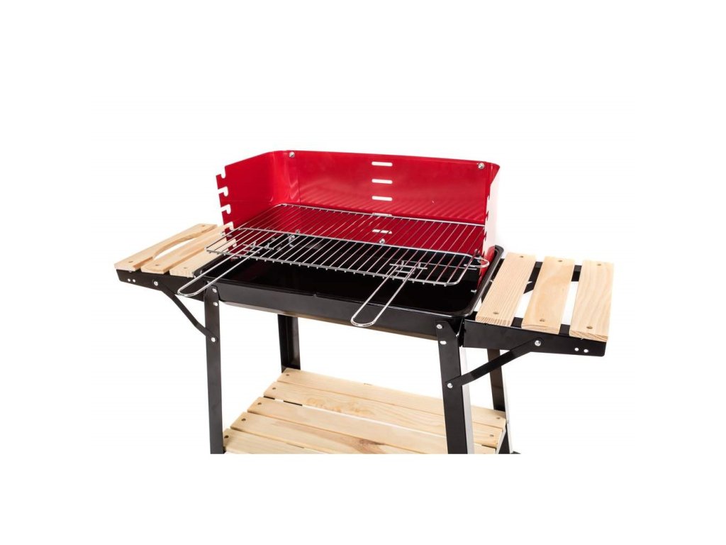 Žar je opremljen z zaslonom proti vetru, dvema stranskima odlagalnima mizicama in praktičnim spodnjim odlagalnim delom iz lesenih letvic.